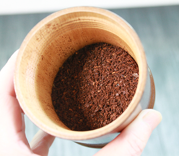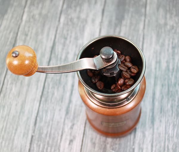 1. 원두를 수동 그라인더에 넣어 분쇄합니다.