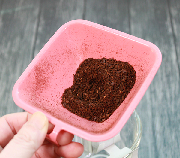 3. 깔때기를 이용하여 여과지 안에 분쇄한 커피 원두를 부어줍니다.