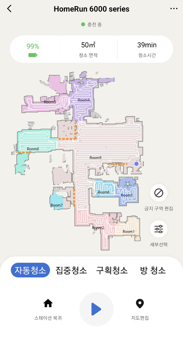 앱에 청소기를 등록하고나면 그 다음부터는 앱에서 이것저것 눌러보며 작동해 보면 됩니다.