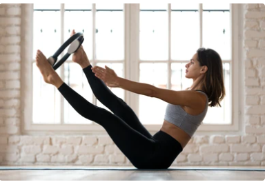 * 필라테스 링 - 유연한 금속이나 플라스틱 프레임에 손잡이가 달린 고리로, 주로 팔, 다리, 엉덩이 근육 강화에 사용되며 균형 조절 및 저항 운동에 유용합니다.