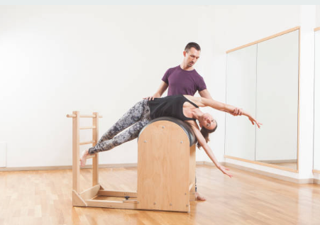 * 바렐 - 곡선형의 큰 통 모양의 기구로, 등, 허리, 골반 등의 유연성과 강화를 위해 사용되며 바렐에 눕거나 앉는 동작을 수행하며 균형을 향상시킵니다.
