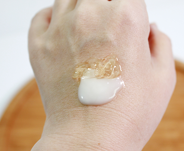 이 에센스는 스킨 에센스가 다 섞여 있는 게 아니라 따로따로 들어있고, 두 개의 구멍에서 각각 스킨에센스와 크림로션이 따로따로 나옵니다. 분출구가 두 개예요