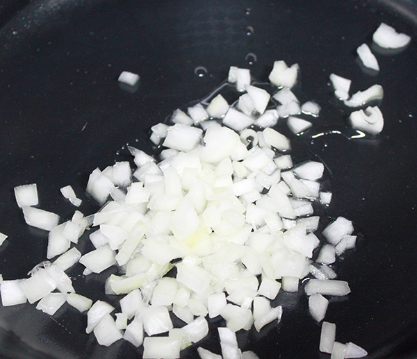 1. 양파를 작게 채 썰어준 뒤 달군 팬에 식용유를 넣고 양파를 먼저 볶아줍니다.