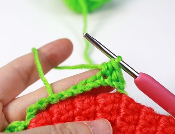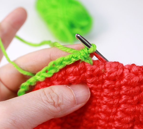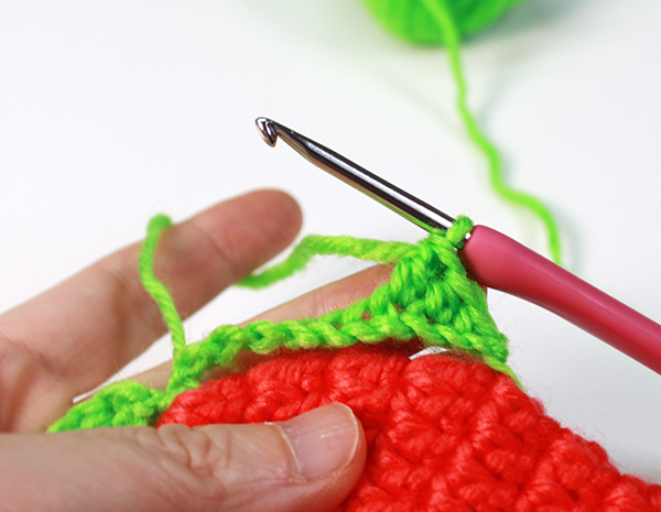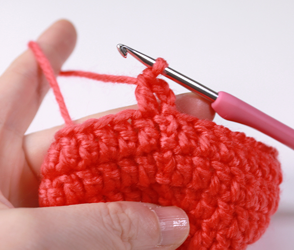 마지막 짧은뜨기 코에 빼뜨기 한 뒤 아래쪽으로 실을 가져와 어색하지 않게 마무리해줍니다.
