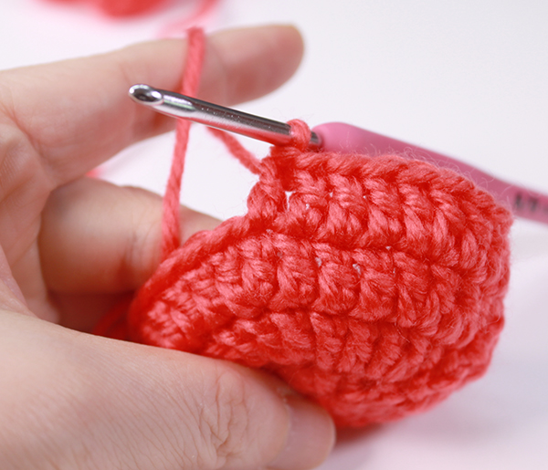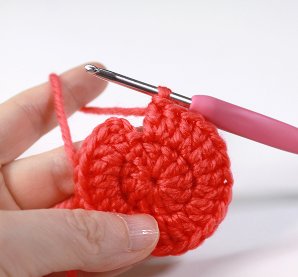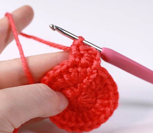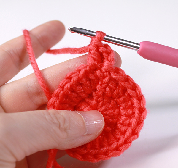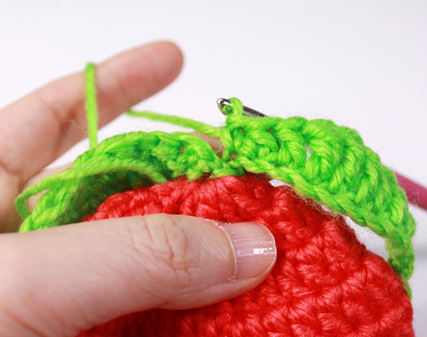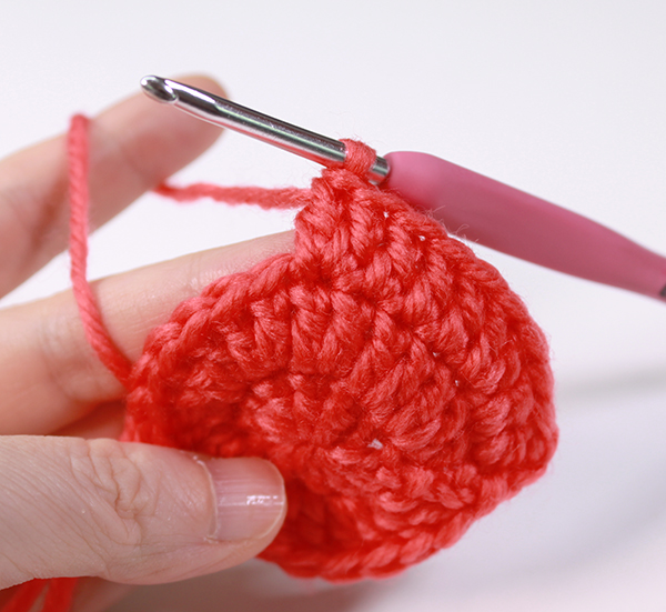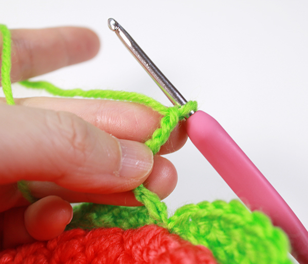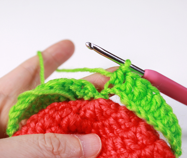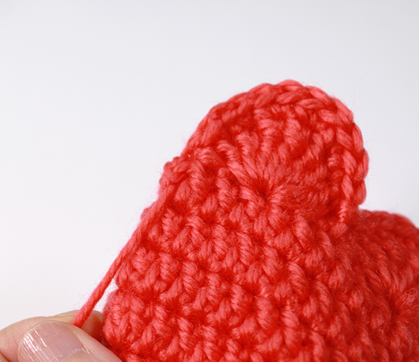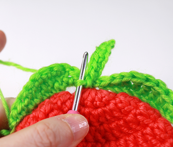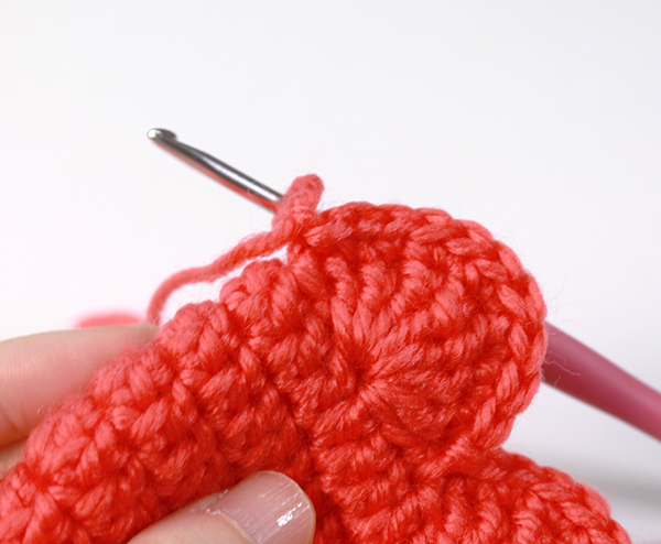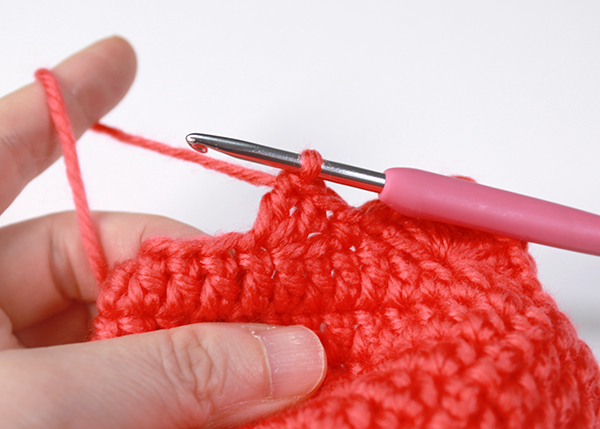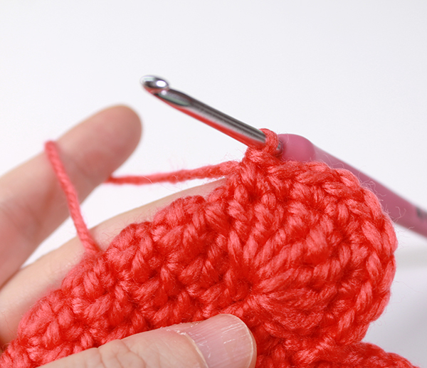 12. 아래쪽까지 짧은 뜨기 후 가운데 부분에 빼뜨기 해서 매듭짓고 실을 자른 후 꽃잎 속으로 실 끝을 숨겨줍니다.