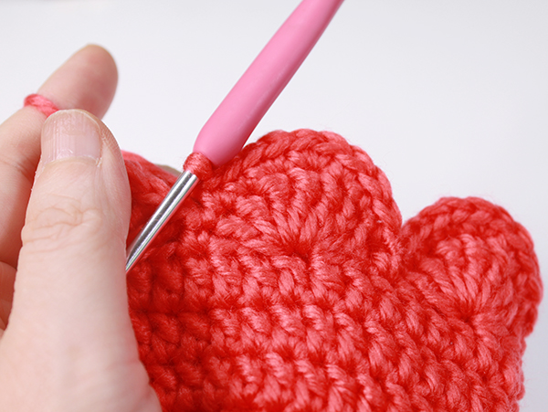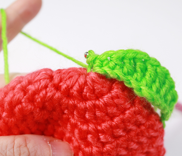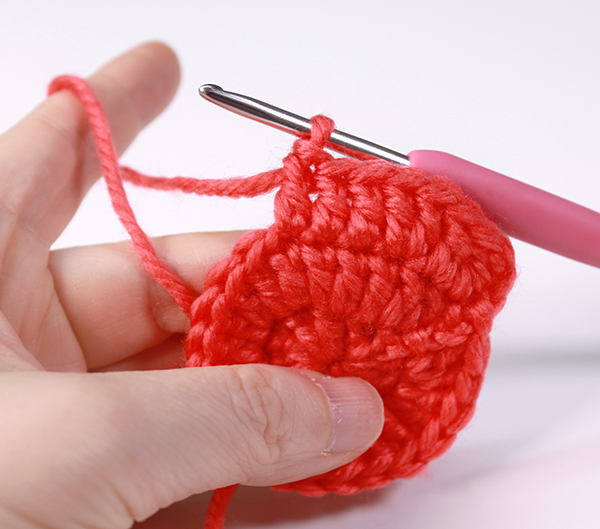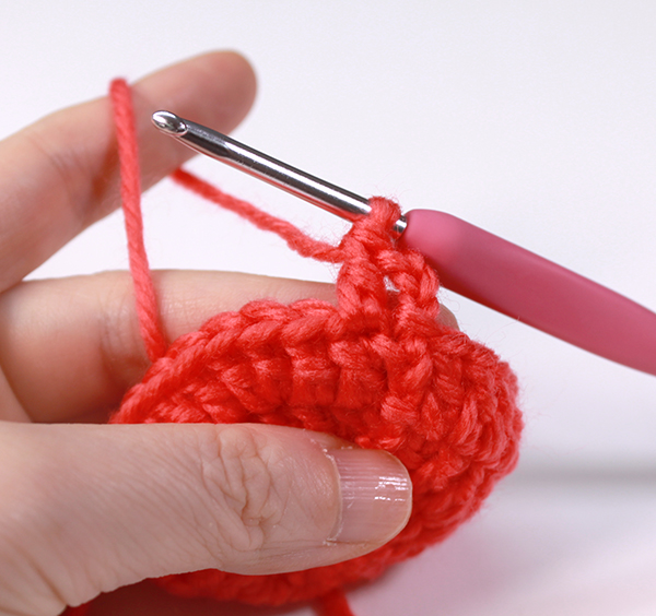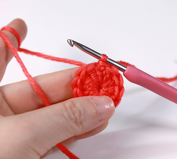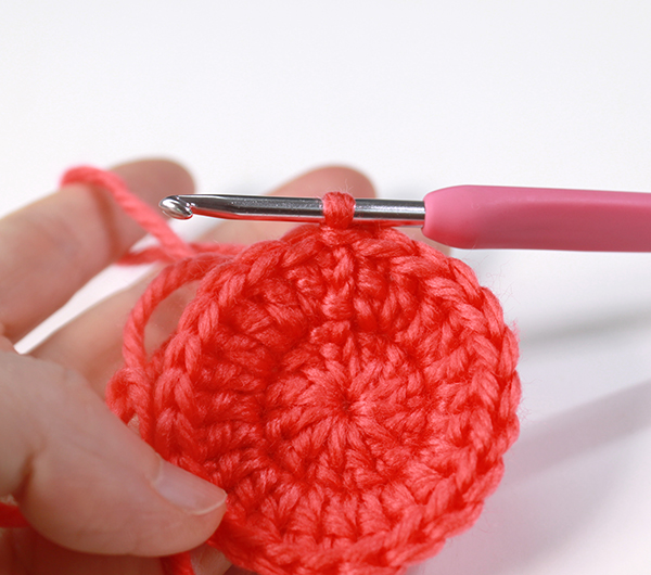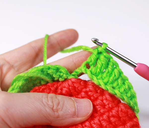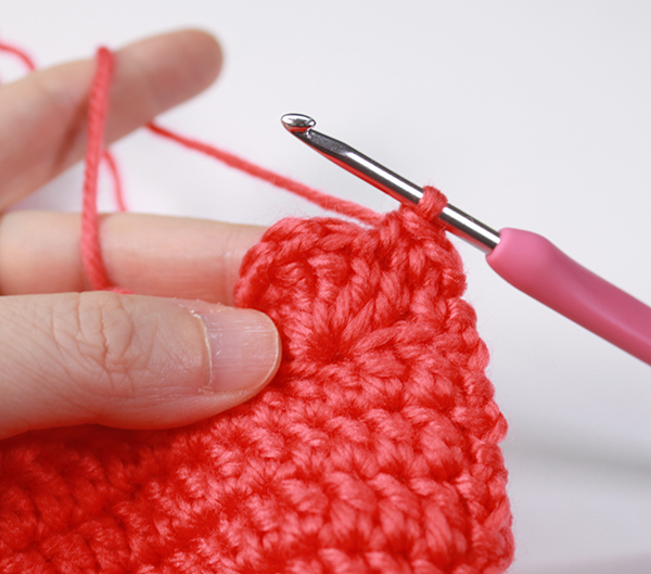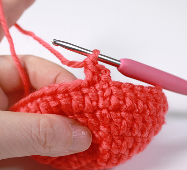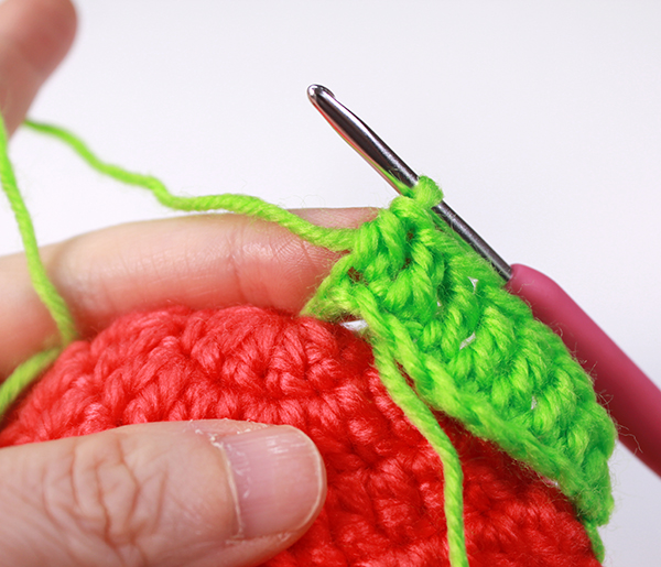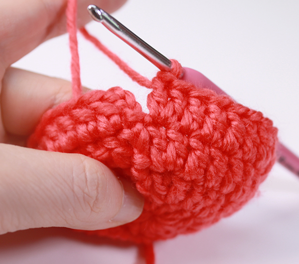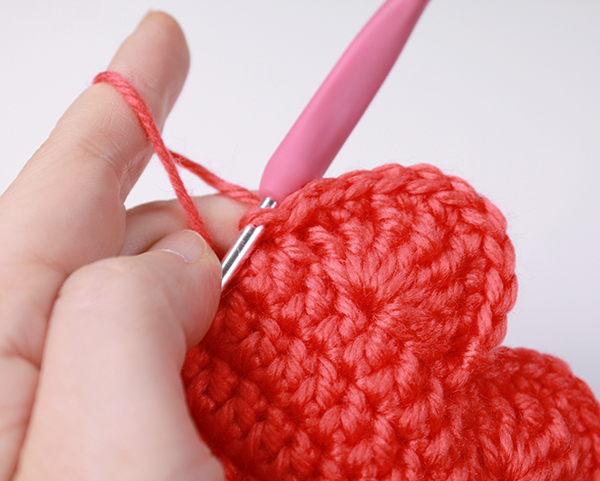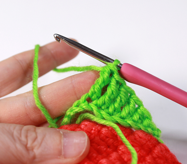 12. 아래쪽까지 짧은 뜨기 후 가운데 부분에 빼뜨기 해서 매듭짓고 실을 자른 후 꽃잎 속으로 실 끝을 숨겨줍니다.