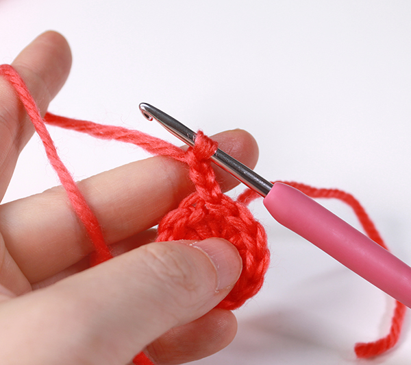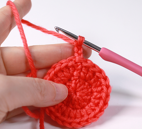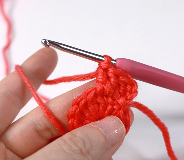 8. 한 바퀴 다 뜨면 꽃잎이 총 6장 나옵니다. 처음에 떴던 짧은 뜨기 코에 빼뜨기 해줍니다.