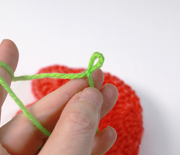 1. 잎사귀를 할 초록색 실을 잡고 매듭을 지어 줍니다.