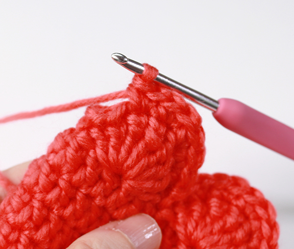꽃잎의 4번째와 5번째 단 사이에 빼뜨기 해주세요