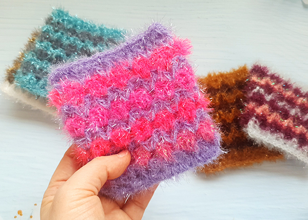 코바늘 수세미 하면 보통 동그란 원형의 수세미를 많이 만드는데, 이번에는 네모 모양의 사각 수세미로 만들어 보았어요.