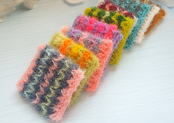 1. 실 : 수세미실 아무거나 괜찮습니다. 저는 수세미실을 여러 종류를 사용해 보았는데, 그래도 그중 고급수세미실이 부드럽기도 하고 양도 많고 칼라도 다양해서 가장 많이 구매하고 있어요.