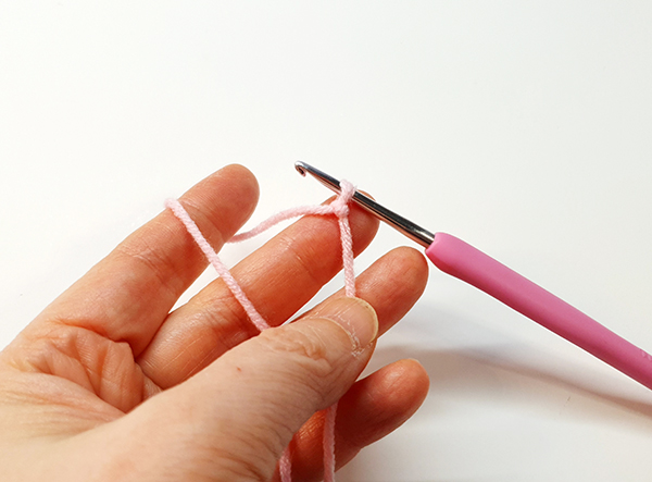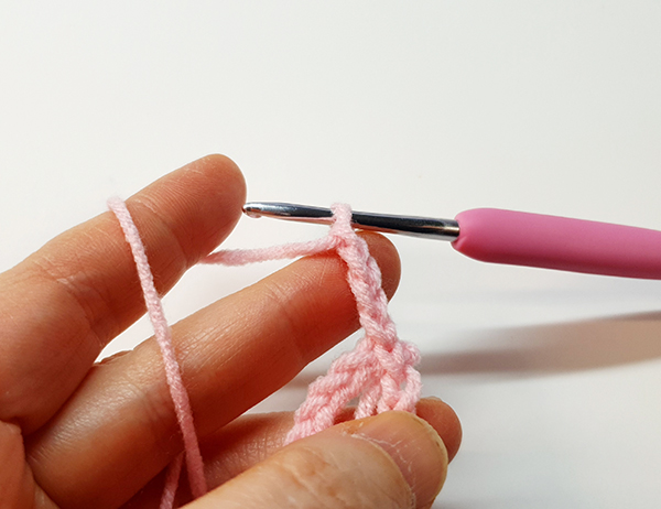 2. 사슬 하나를 더 해주고 같은 고랑에 한길긴뜨기를 해줍니다.