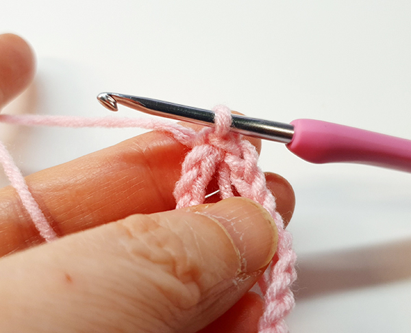 2. 사슬 하나를 더 해주고 같은 고랑에 한길긴뜨기를 해줍니다.