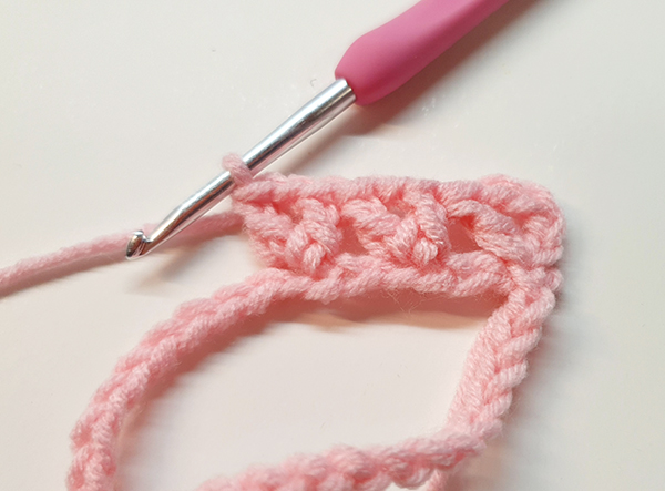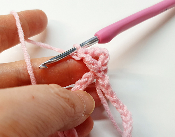 1. 가운데 고랑으로 빼뜨기를 한번 더 해준 뒤 기둥사슬 3개를 떠줍니다.