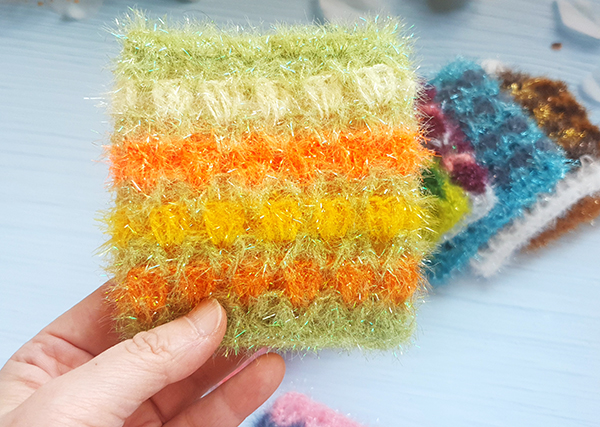 코바늘 수세미 하면 보통 동그란 원형의 수세미를 많이 만드는데, 이번에는 네모 모양의 사각 수세미로 만들어 보았어요.