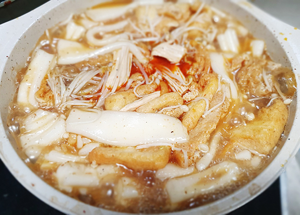 6. 냉동유부를 넣고 다시 끓인 뒤 마지막에 숙주와 팽이버섯을 넣고 조금 후에 불을 끄면 완성