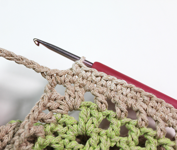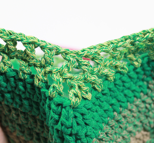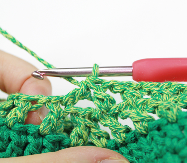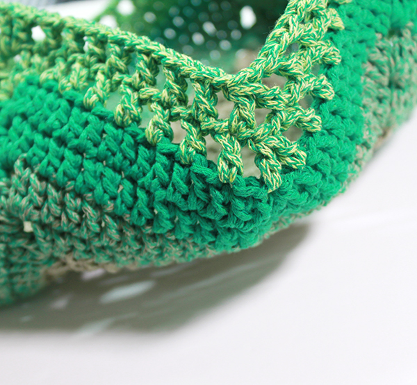 7. 마지막 고랑에는 빼먹지 말고 고랑에 한길긴뜨기 두 개를 떠 주세요.