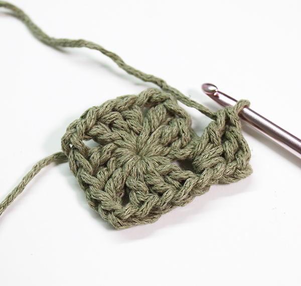 3. 사슬 두 개 + 한길긴뜨기 3개를 두 번 더 반복해 주어 위 사진과 같이 사각이 되도록 만들어 줍니다.