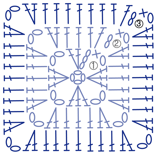 시작 부분 사슬이 어색하지 않게 사각 모서리에서 시작하는 방법으로, 처음에 조금 헷갈릴 수 있으나 조금 뜨면서 방법을 익히면 어렵지 않게 만들 수 있습니다.