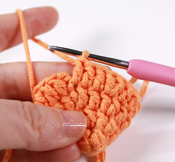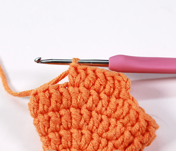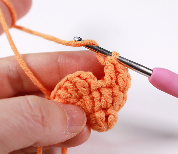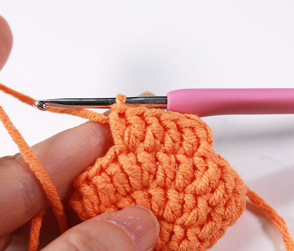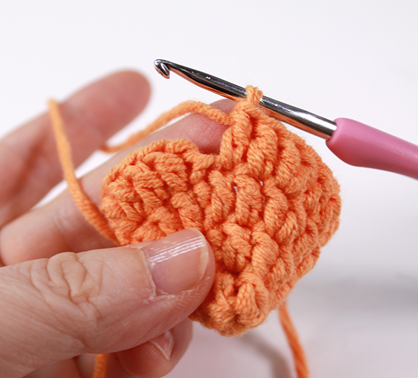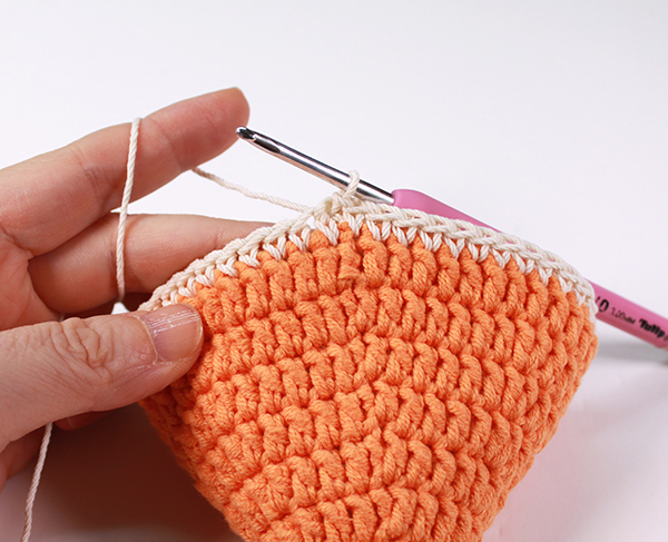 4. 코마다 짧은뜨기 한 개씩 안면과 겉면을 맞추어 두 겹을 잡고 떠줍니다.