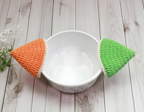 뜨거운 냄비의 양쪽 손잡이를 잡을 때도, 뜨거운 냄비 뚜껑을 잡을 때도 꼭 필요하고 유용한 게 냄비 집게인데요, 시중에 실리콘이나 비슷한 게 있지만, 코바늘 뜨개질로 이쁘게 만들어 주방도 화사하게 인테리어 할 수 있어서 좋아요.