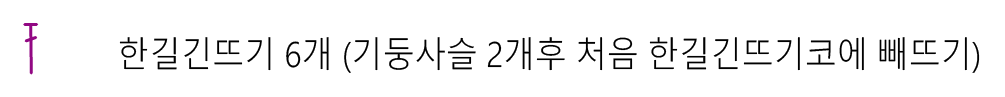마지막 세트는 빼뜨기 하면서 생긴 코에 한길긴뜨기 하나를 떠줘서 기둥사슬 포함 하여 한길긴뜨기 두개 한 세트를 만들어 줍니다.
