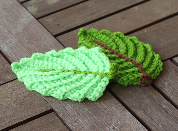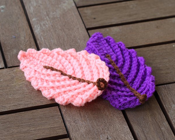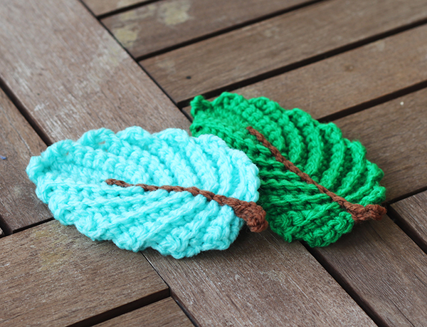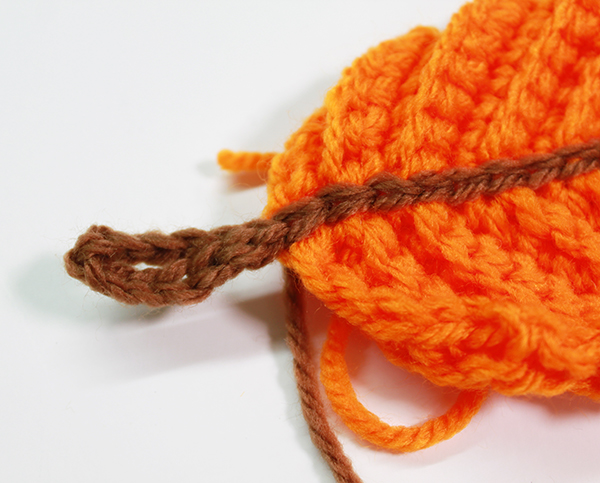 21. 나뭇잎 중간을 스티치 해서 끝까지 온 뒤 사슬 10개 떠줍니다.