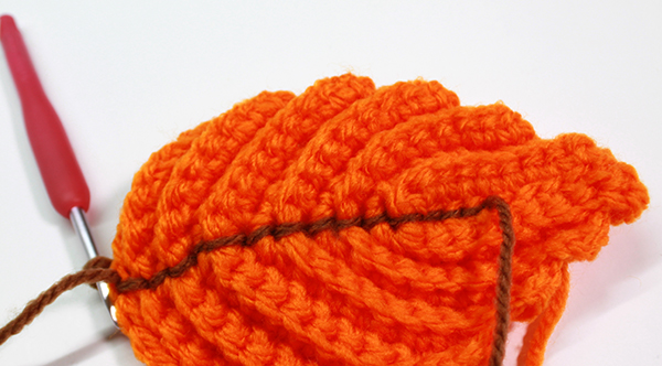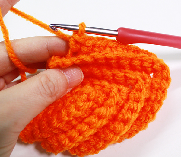 16. 8단 : 8번째 코에 짧은뜨기 2개 해줍니다. (그전에는 가운데 부분 3개씩 8단은 2개)