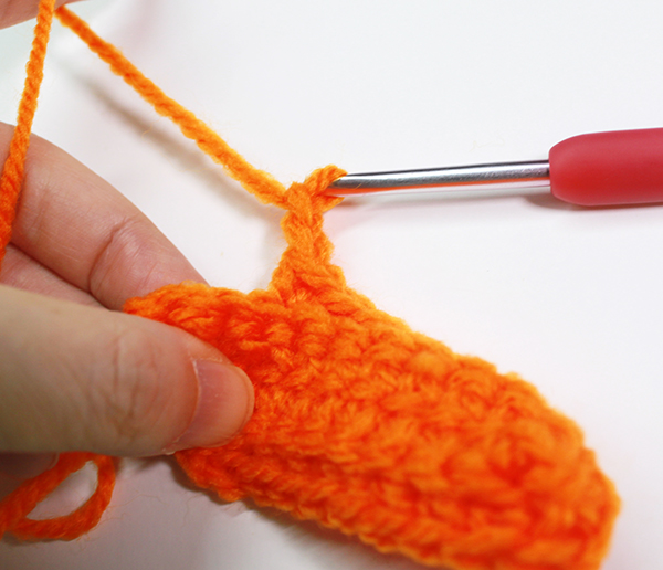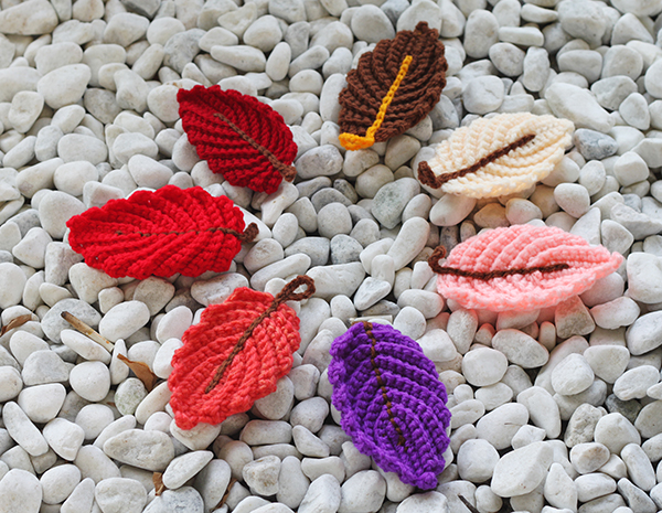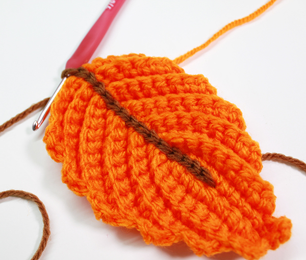 21. 나뭇잎 중간을 스티치 해서 끝까지 온 뒤 사슬 10개 떠줍니다.