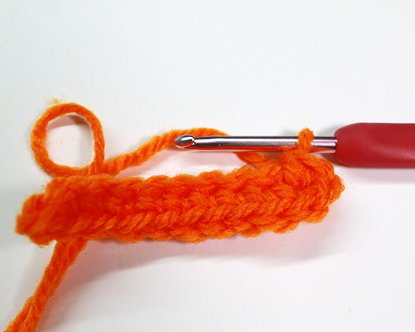 5. 1단 : 사슬코 반대편으로 다시 되돌아 가면서 한코에 하나씩 짧은뜨기 8개 떠줍니다. (사슬 끝 코에 짧은뜨기 3개 후 한코에 하나씩 짧은뜨기 8개)