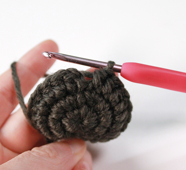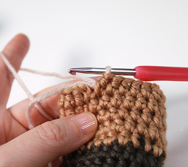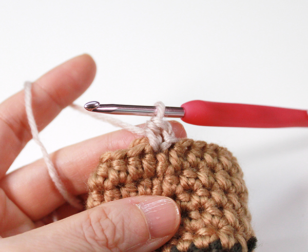 1. 2단의 첫 번째 짧은뜨기 코에 빼뜨기 하고 다시 기둥사슬 하나 떠줍니다.