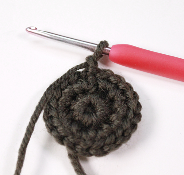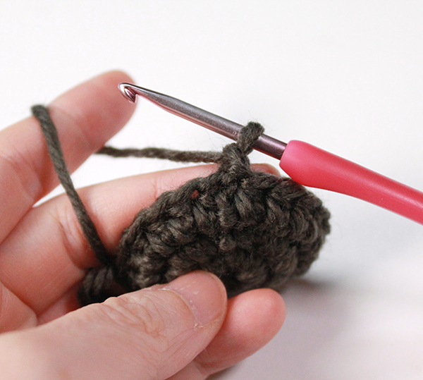 1. 2단의 첫 번째 짧은뜨기 코에 빼뜨기 하고 다시 기둥사슬 하나 떠줍니다.