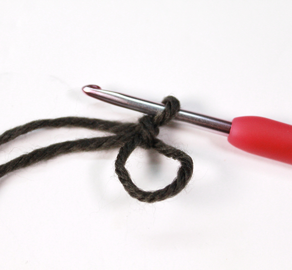 2. 첫 번째 긴뜨기 코에 빼뜨기 후 기둥사슬 하나 올리고 안쪽에서 새로 들어간 실과 원래 떴던 실 두 개를 묶어 줍니다.