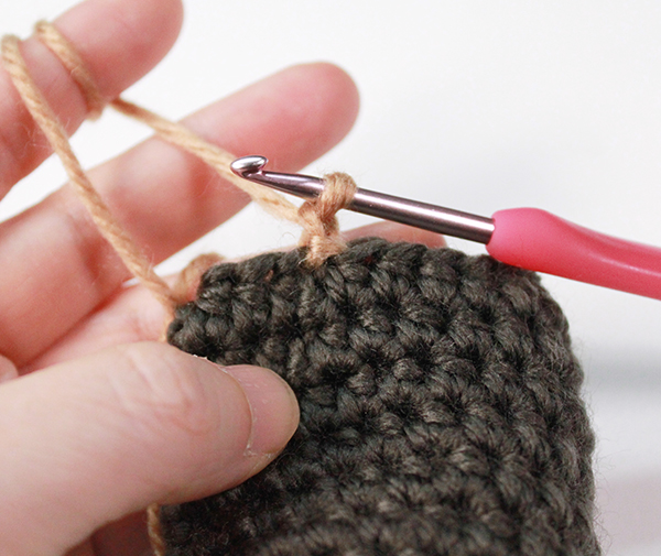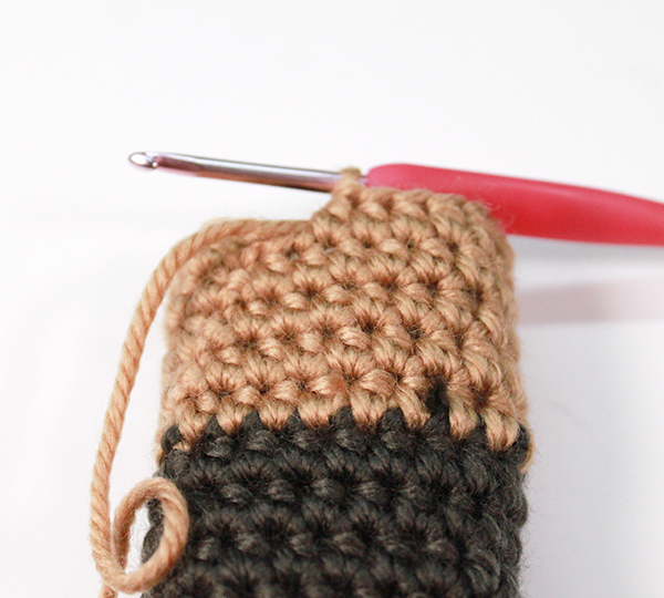 4. 5정도 뜬 뒤 다시 마지막 긴뜨기 할 때 다른 칼라로 실을 빼서 긴뜨기를 합니다.