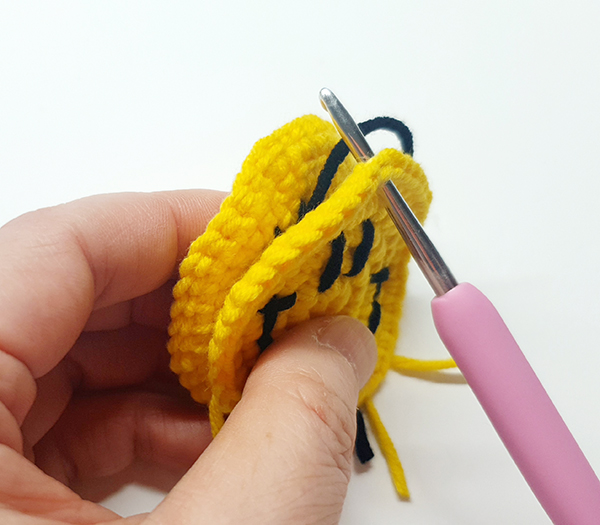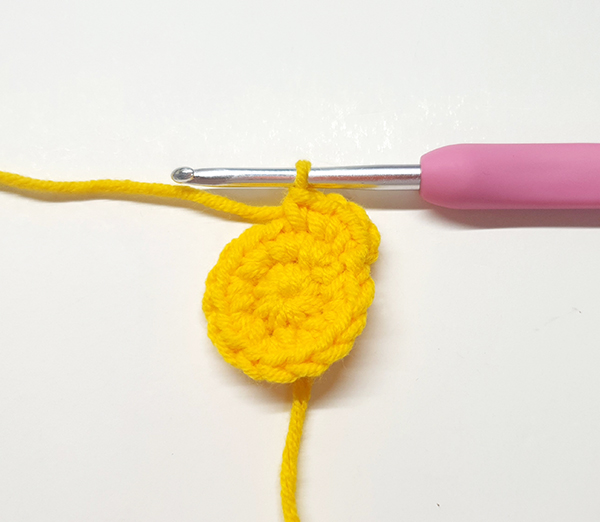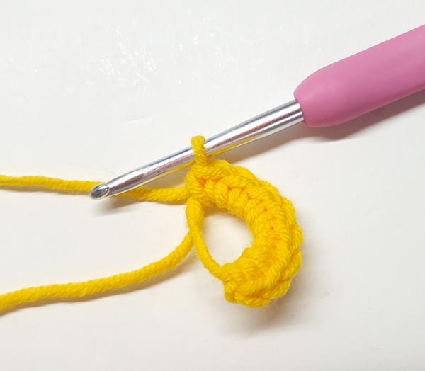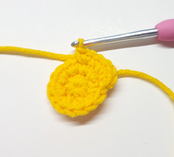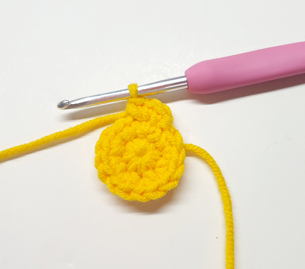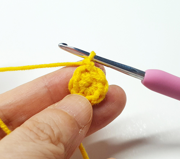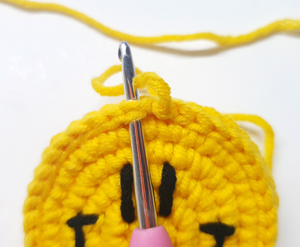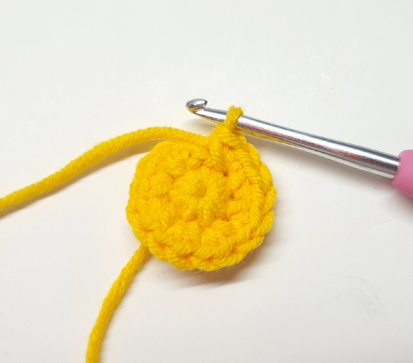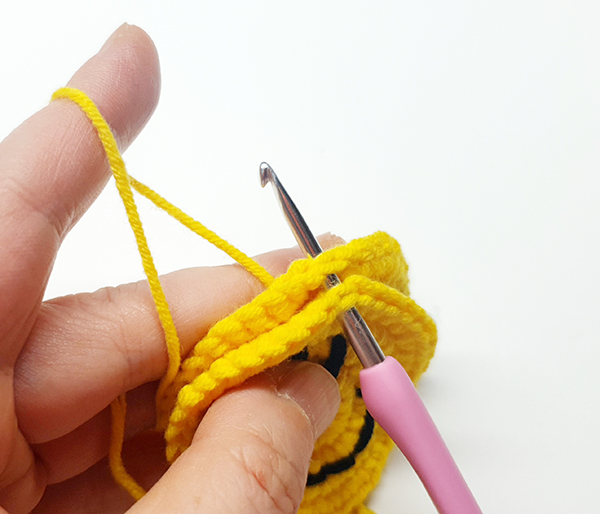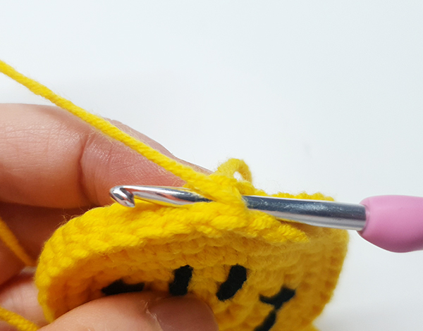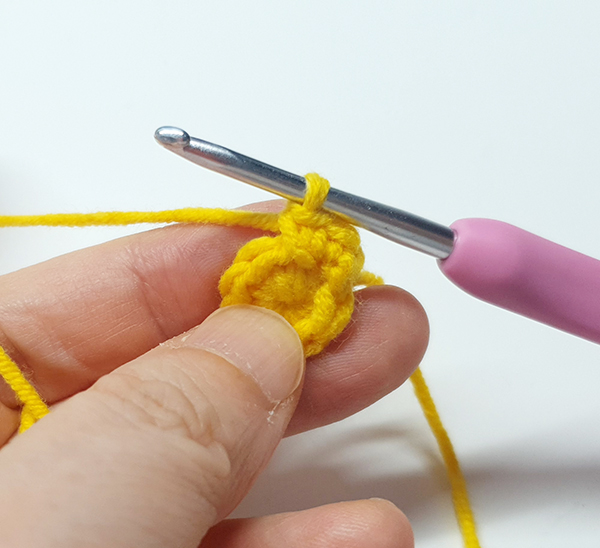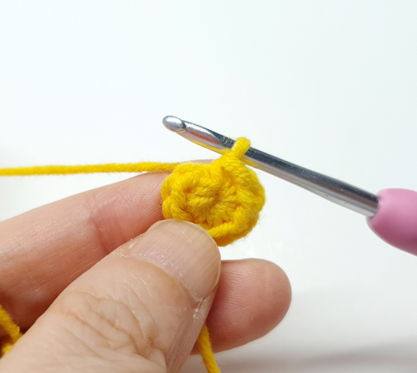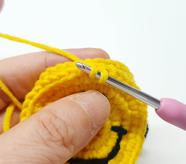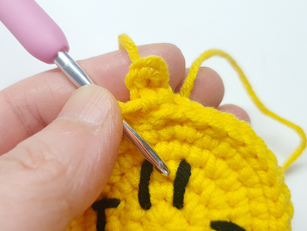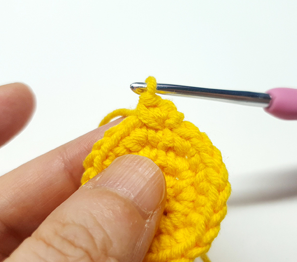 5. 첫 번째 짧은뜨기 코에 빼뜨기 해줍니다.