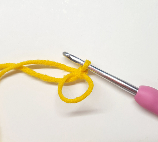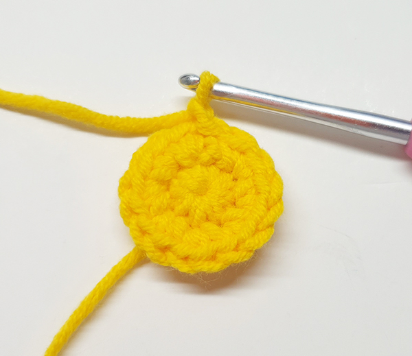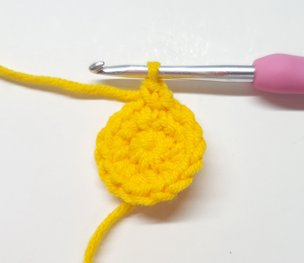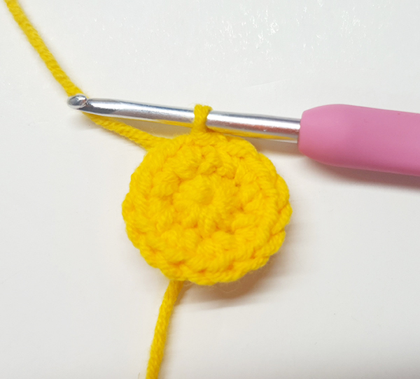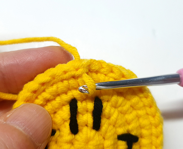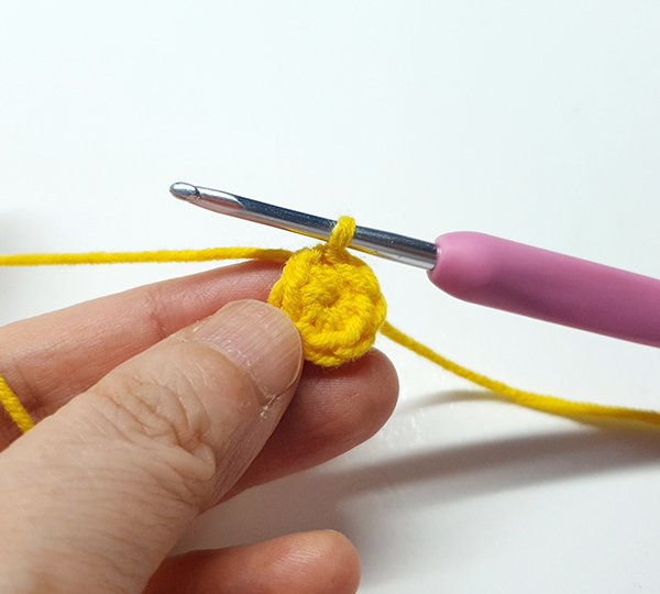 3. 원형코를 당겨서 조여주고, 짧은뜨기 첫 코에 빼뜨기 해줍니다.