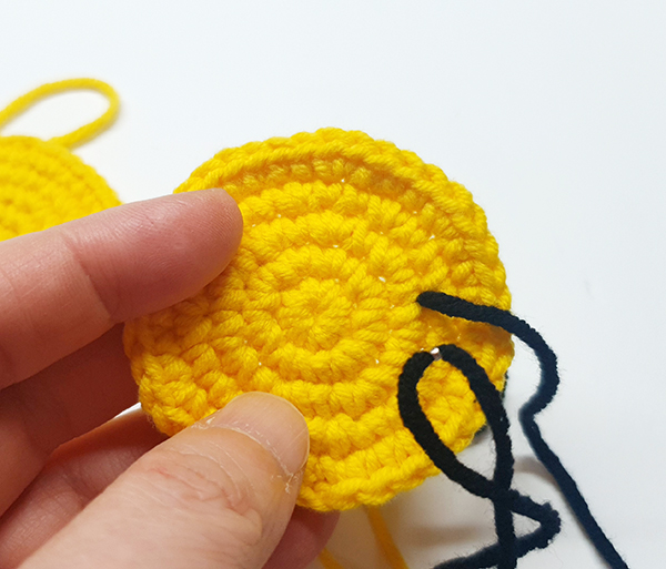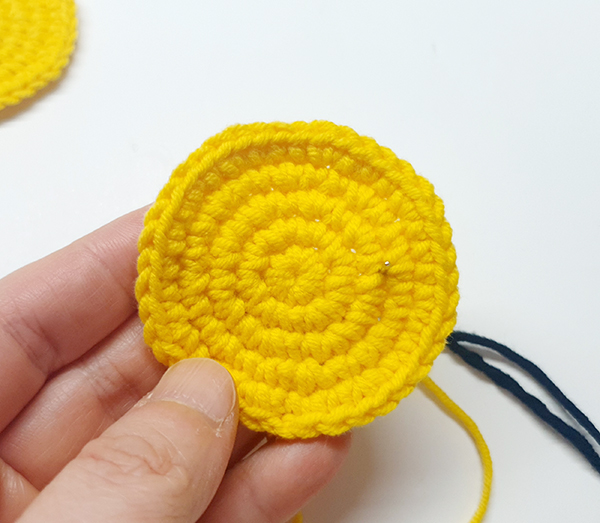 이때, 사이즈가 너무 차이 나지 않도록 첫 번째 뜬 원형과 크기를 비교하면서 떠주세요. 두 개를 맞붙여서 만들 것이기 때문에 사이즈가 똑같아야 좋습니다.