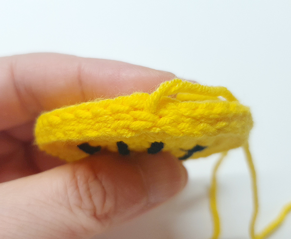 2. 눈 모양이 되는 부분으로 다시 바늘을 넣어 실을 당겨 눈을 만들어줍니다.