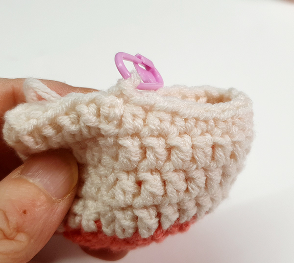 아기양말 수세미 만드는 법 - 7단 (6단에서 단수링 끼워놓은 곳부터 시작)