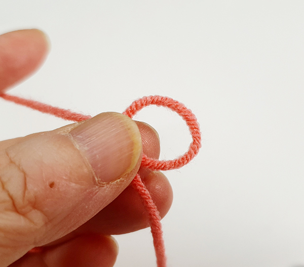 7. 매직원형코하면서 당겼던 실 끝도 중간부분 실 하나를 잡아 매듭지어 매직원형코가 더이상 커지지 않게 해줍니다.