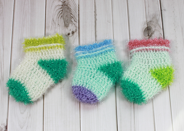 귀엽고 이쁜 아기양말 수세미 칼라별로 만들어 보세요~