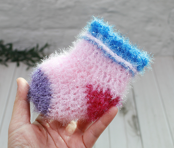 6. 입구가 뚫린 아기양말수세미를 원하시면 여기서 완성하셔도 됩니다.