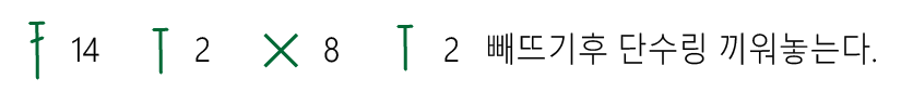 2. 빼뜨기 한 뒤에 아래처럼 단수링을 끼워줍니다.