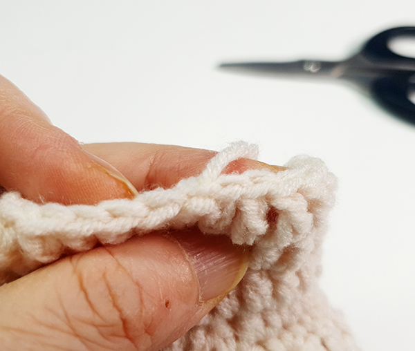 5. 처음 짧은뜨기 했던 코에 빼뜨기 해주고 실을 끊고 마무리 해줍니다.