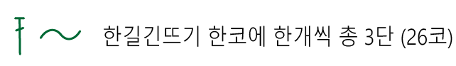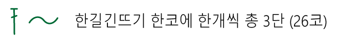 - 3, 4, 5단은 한코에 한길긴뜨기 한개씩 26코를 똑같이 떠줍니다.
