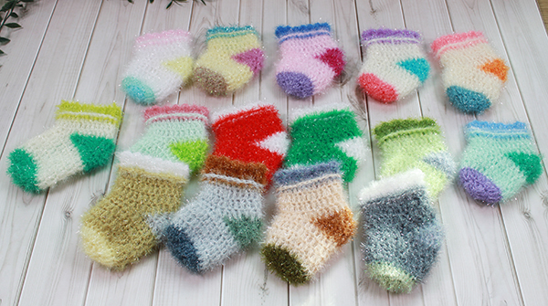 귀엽고 이쁜 아기양말 수세미 칼라별로 만들어 보세요~