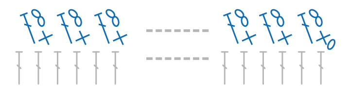 1. 위 도안대로 떠주면 되는데요, 한길긴뜨기14개, 긴뜨기2개, 짧은뜨기8개, 긴뜨기 2개를 차례대로 떠줍니다.