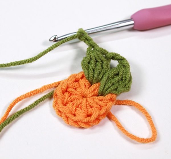 6. 처음에 떴던 기둥사슬 3개 중 젤 위쪽 3번째 사슬코에 빼뜨기 해줍니다. 실 끊고 마무리해서 정리해 줍니다.