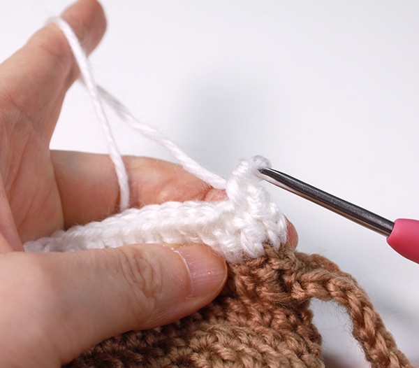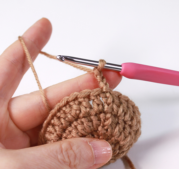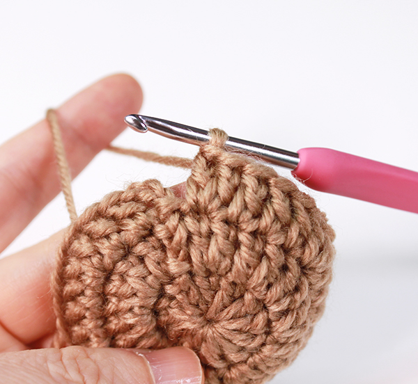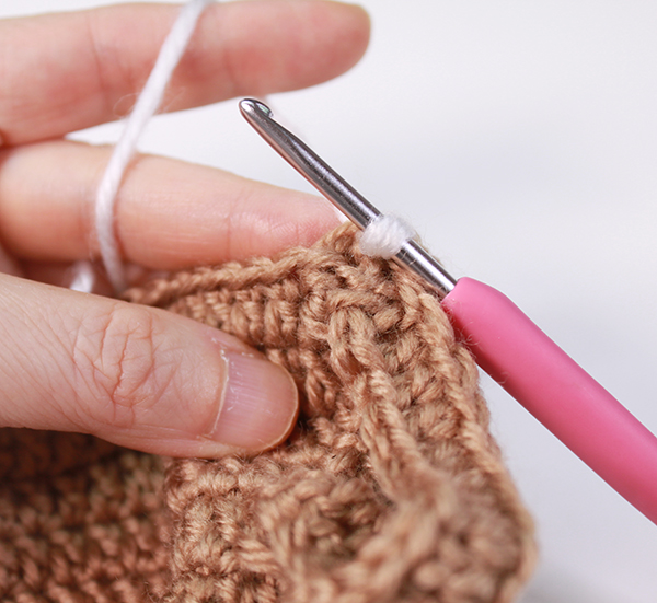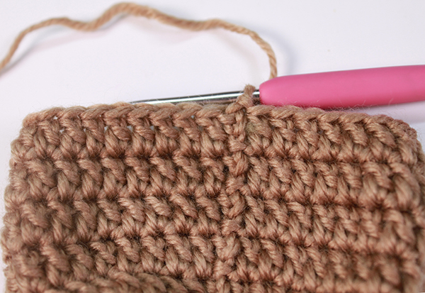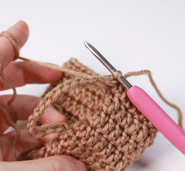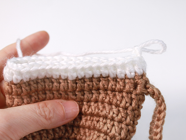 6. 컵을 반으로 접어서 코를 맞잡아 짧은 뜨기를 떠줍니다.