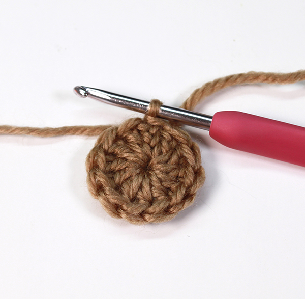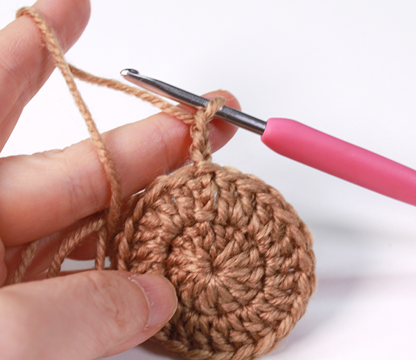 3. 매직원형코를 잡아당겨 조여 주고 기둥사슬 3번째 코에 빼뜨기 해줍니다.
